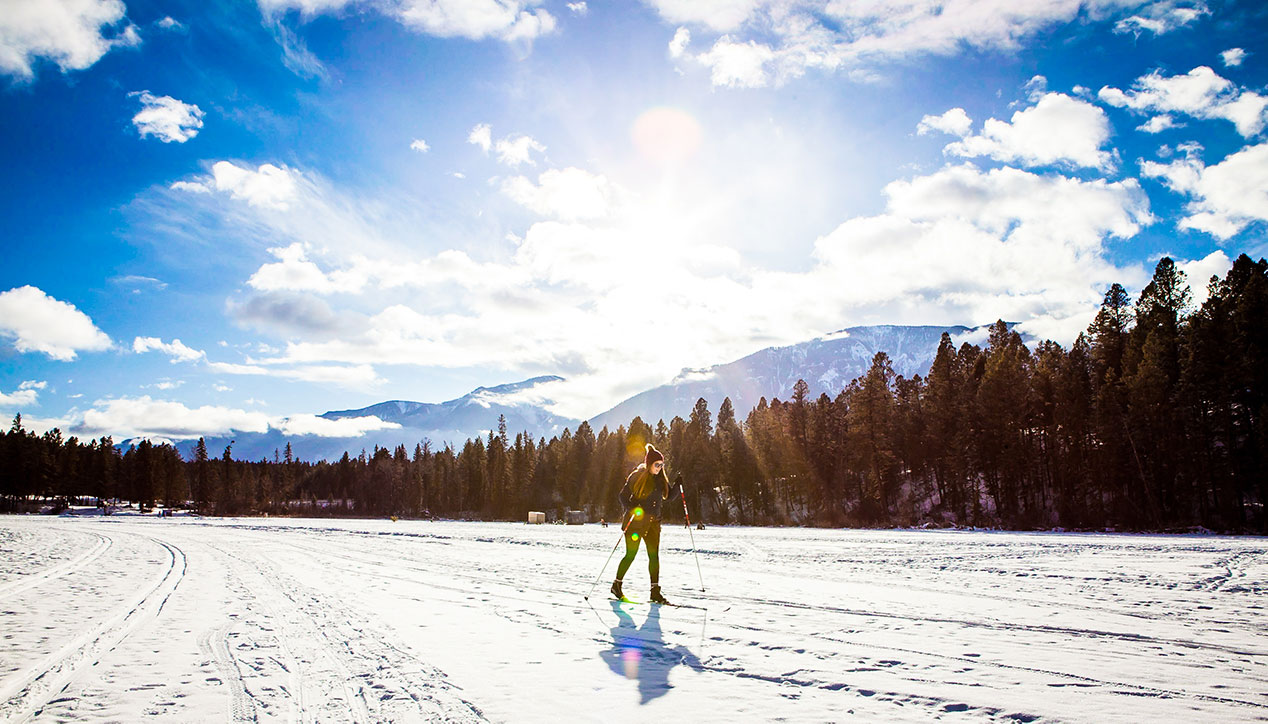 The Lake Lillian Whiteway, located just 10 minutes outside of Invermere, is a gorgeous lake-based 3km classic and skating skiing trail.